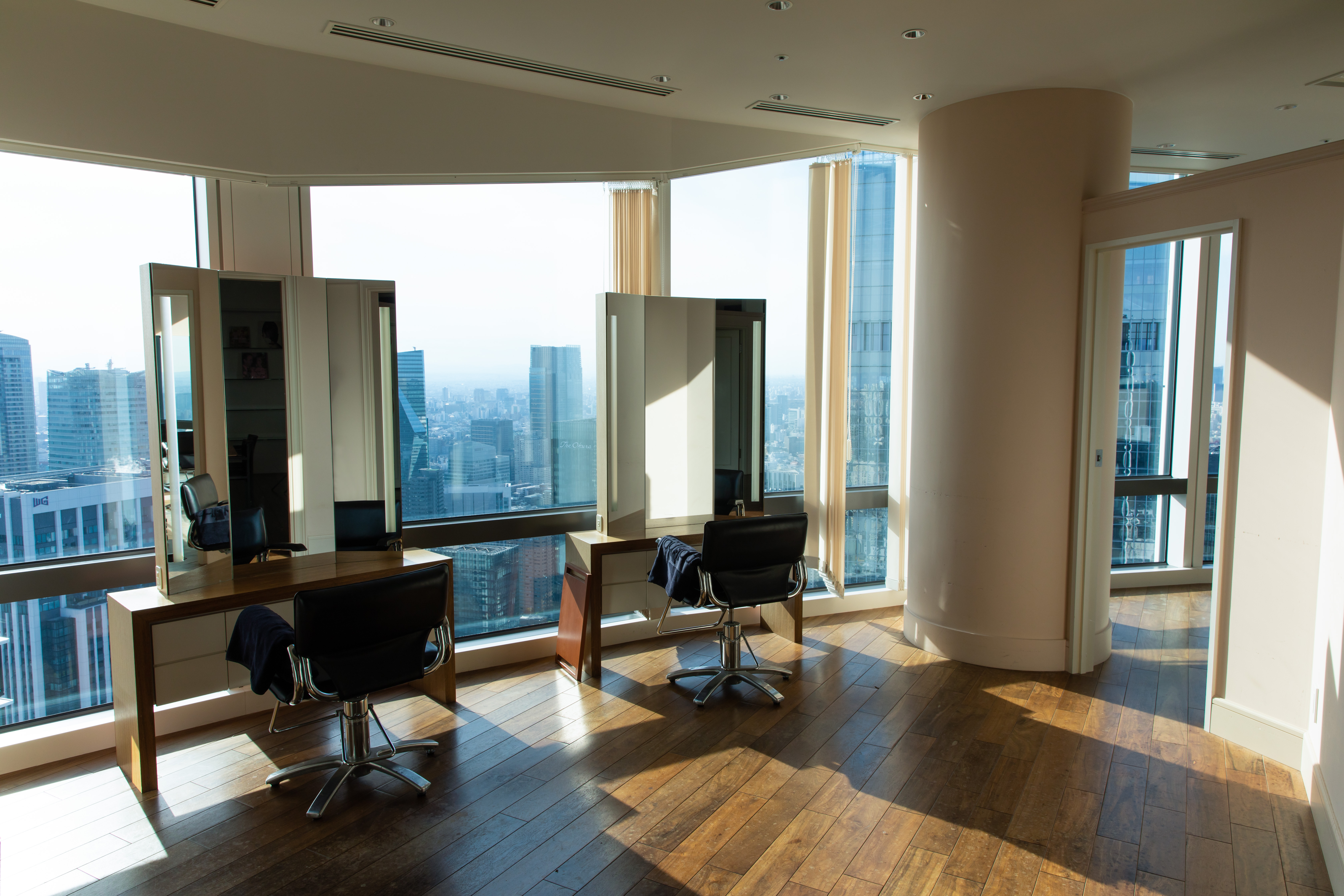 51階のガラス面からの都心を一望できる至極のロケーションと親しい友人のリビングを訪れたような居心地の良い個室空間で、周りのお客様を気にすることなく、ご希望のヘアスタイルや髪のトラブルをご相談ください。経験のあるアーティストがパーソナルに対応致します。