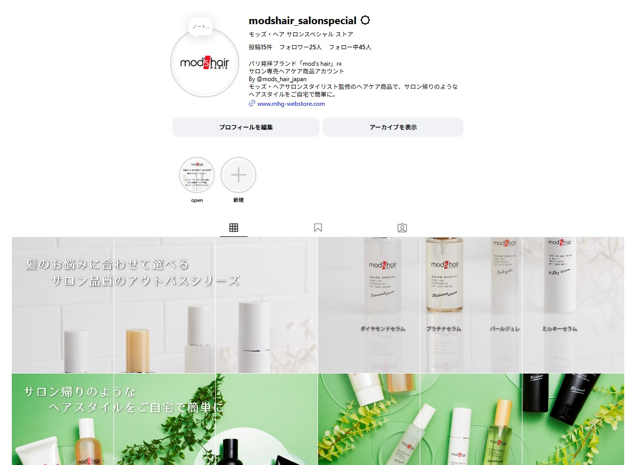 インスタグラムにて、商品専用アカウント「モッズ・ヘア サロンスペシャル ストア」を開設いたしました。
