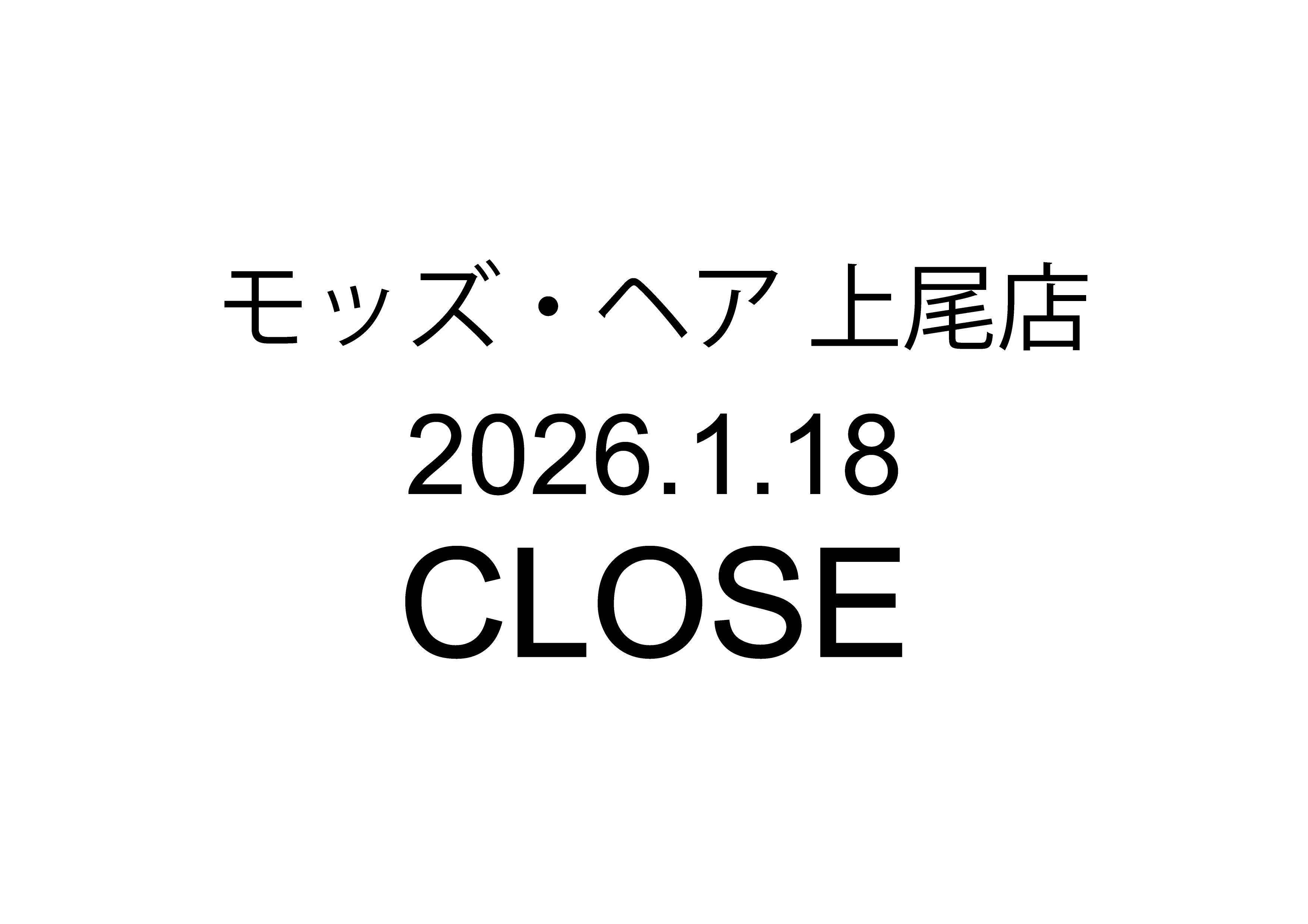 日頃より、モッズ・ヘア上尾店をご愛顧いただき、誠にありがとうございます。誠に勝手ではございますが、モッズ・ヘア上尾店は2026年1月18日をもちまして閉店いたしました。これまでの皆様のご支援に心より感謝申し上げます。