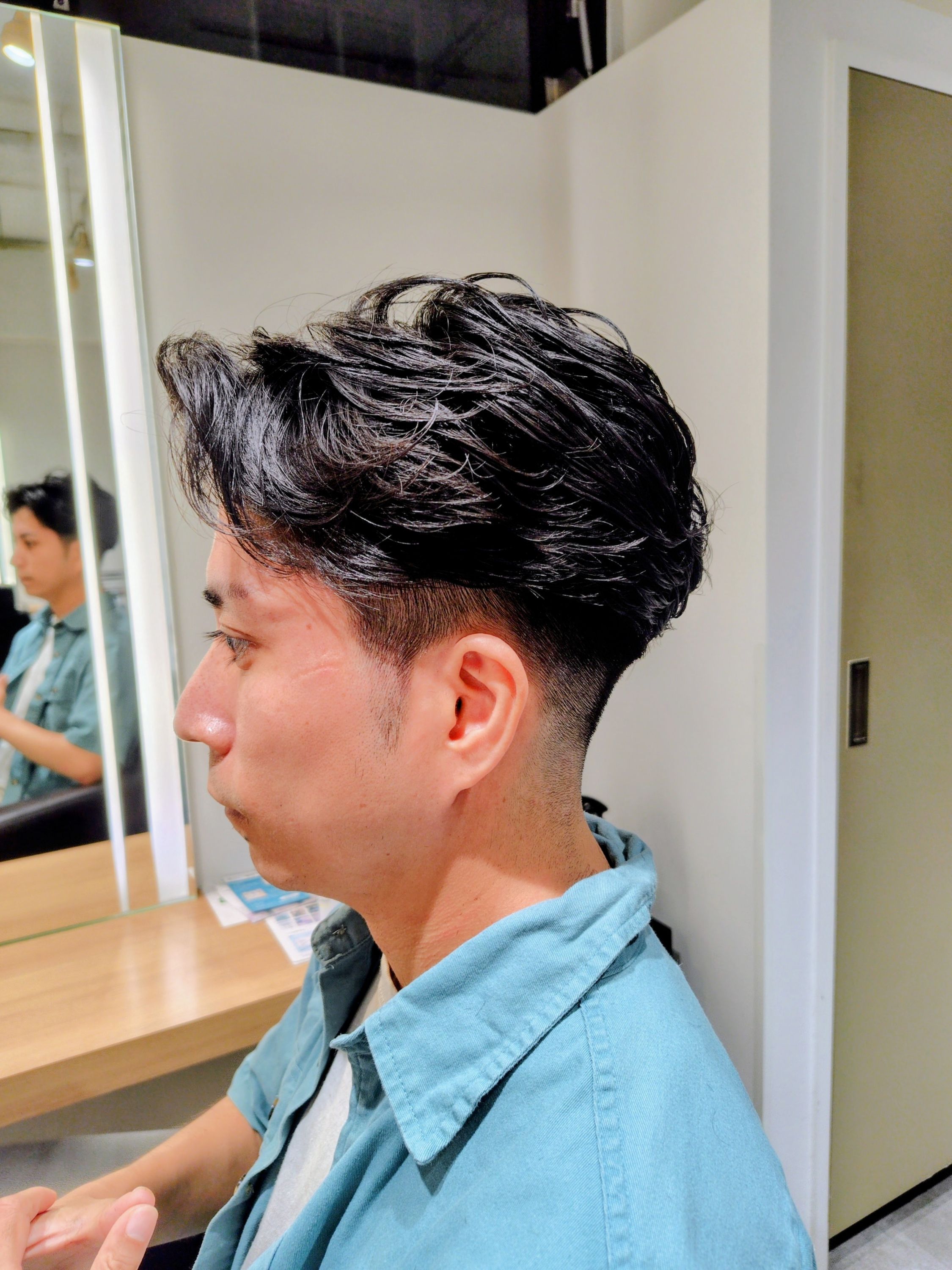 まわりは刈り上げて表面の長さは残しパーマをかけております。